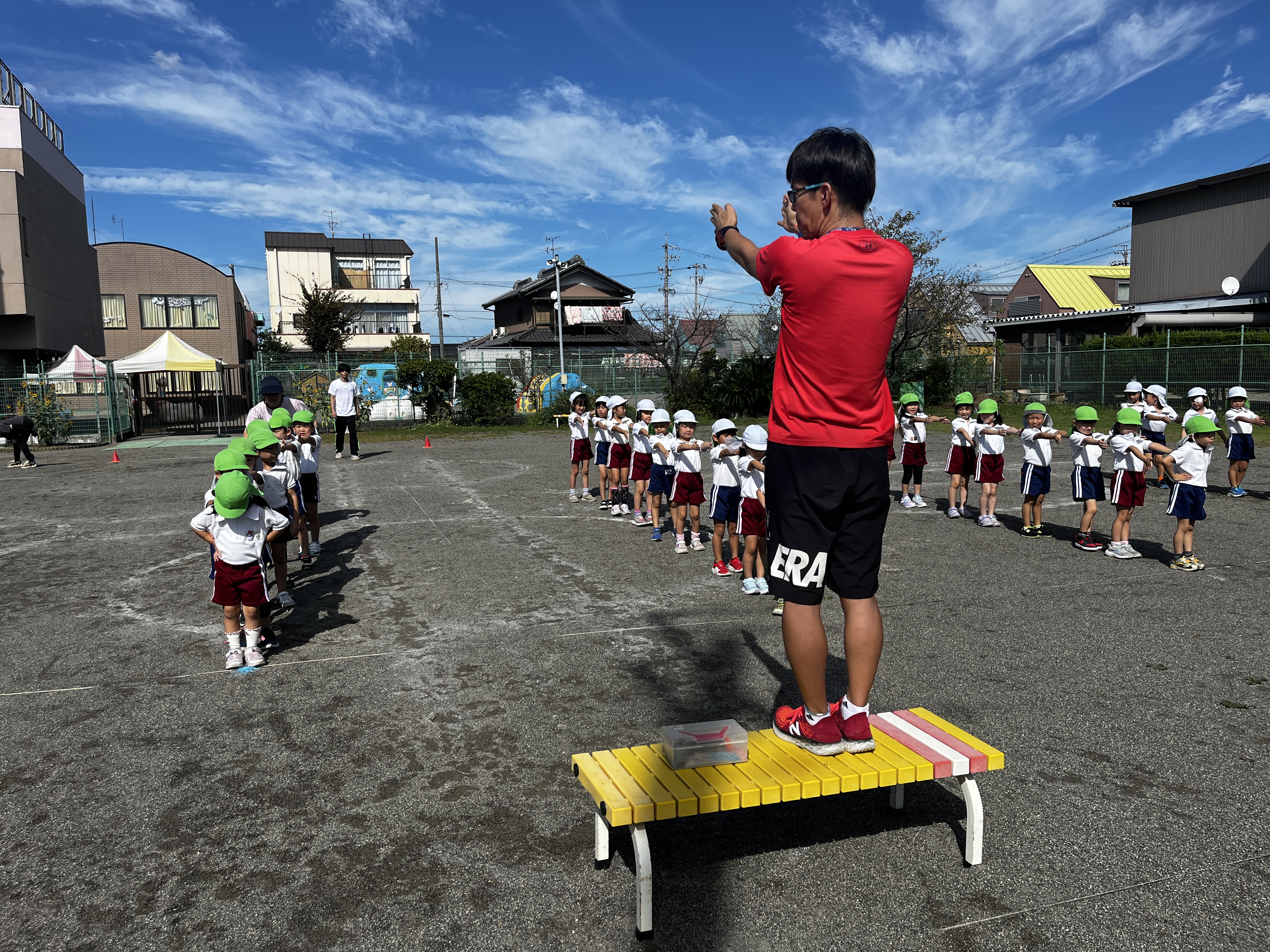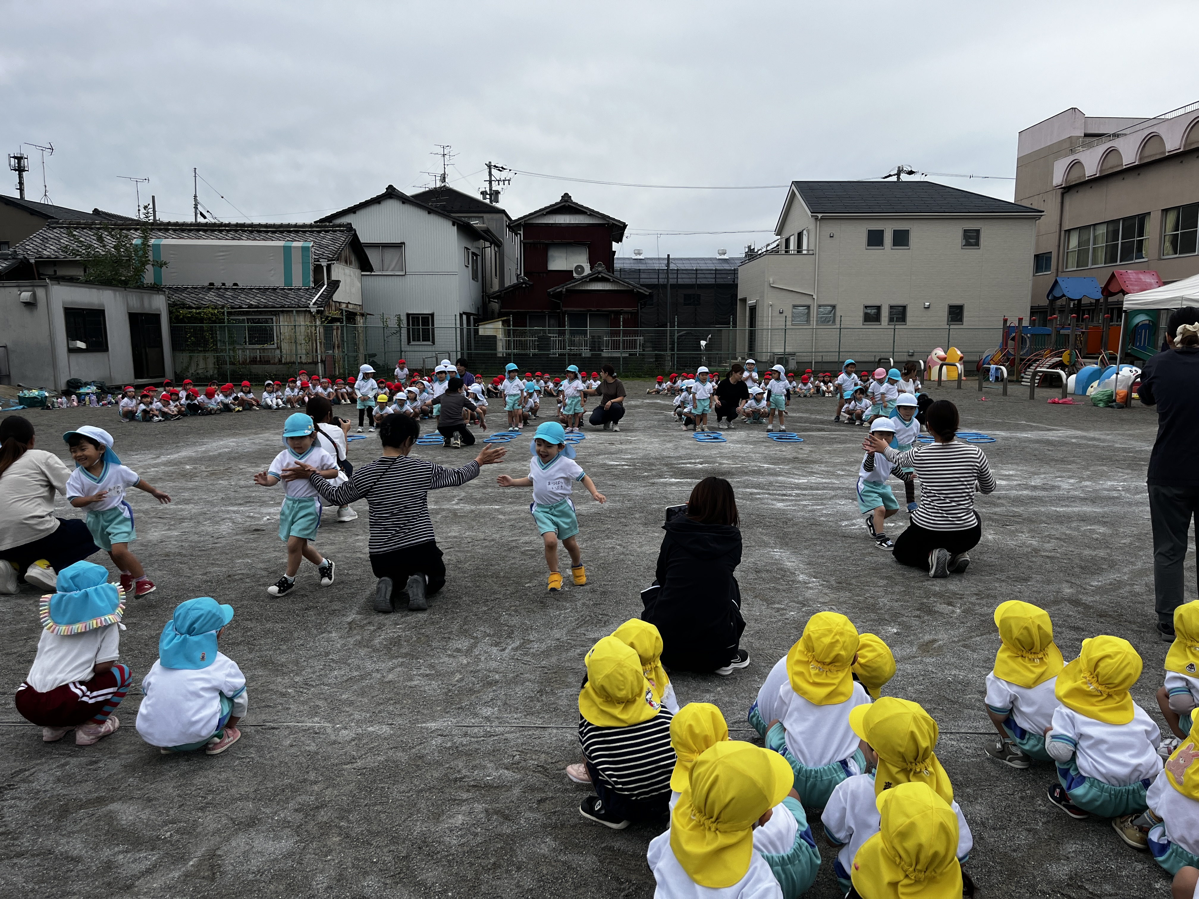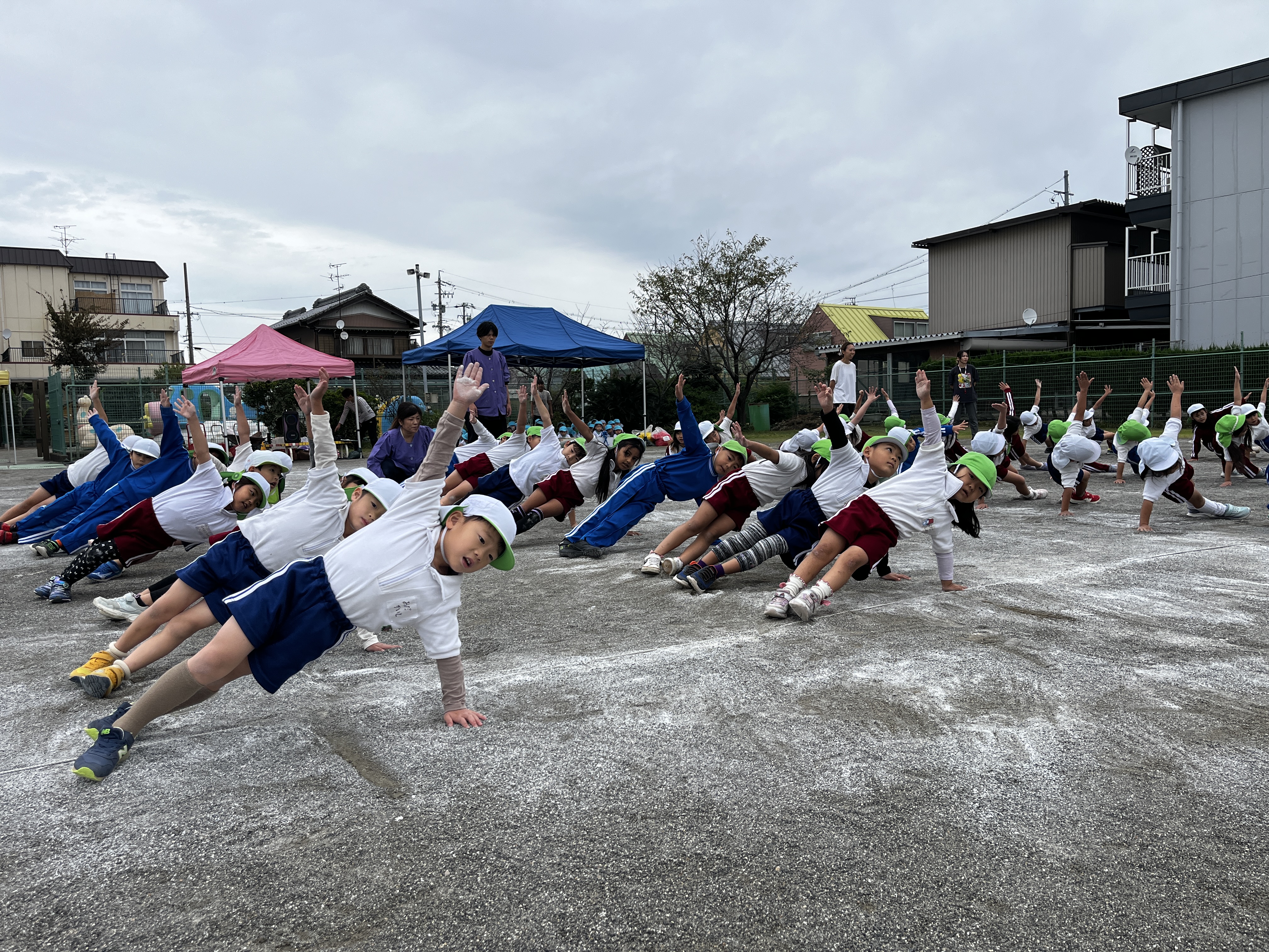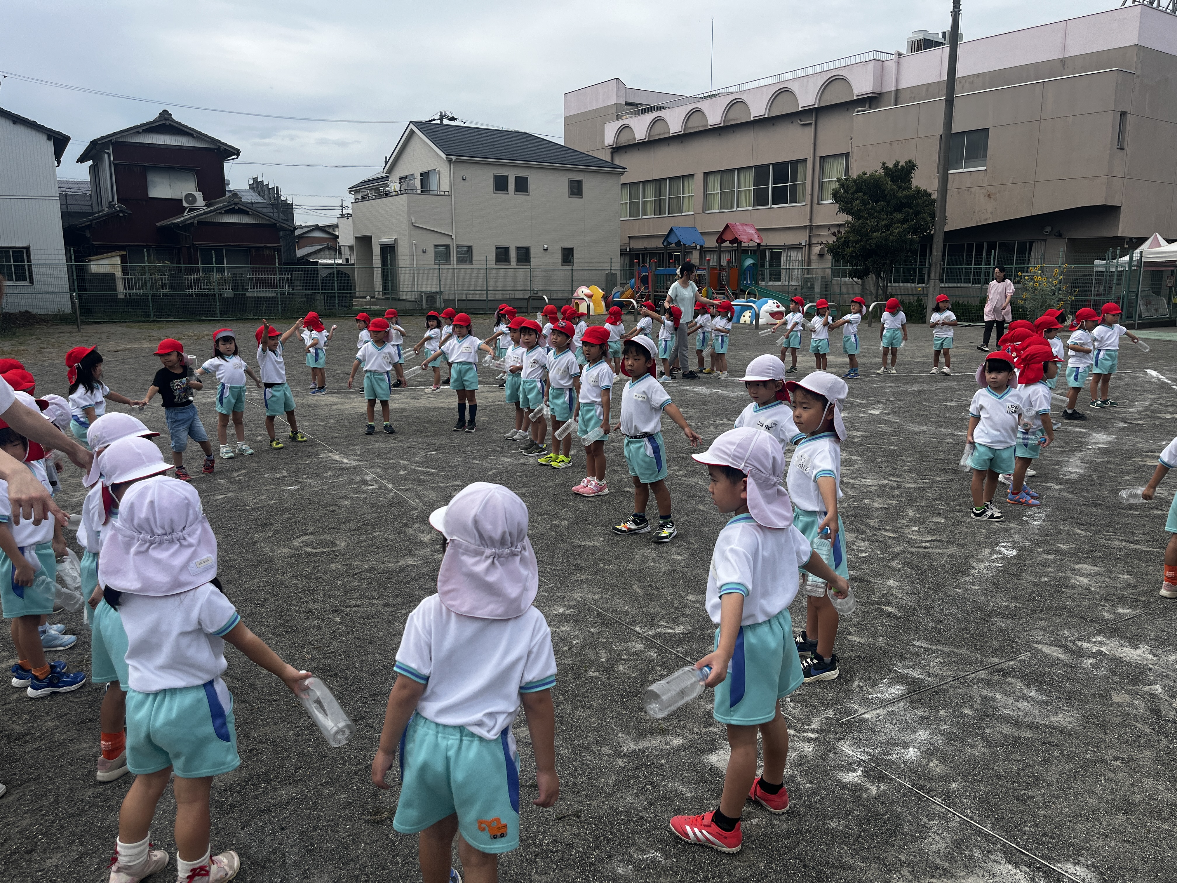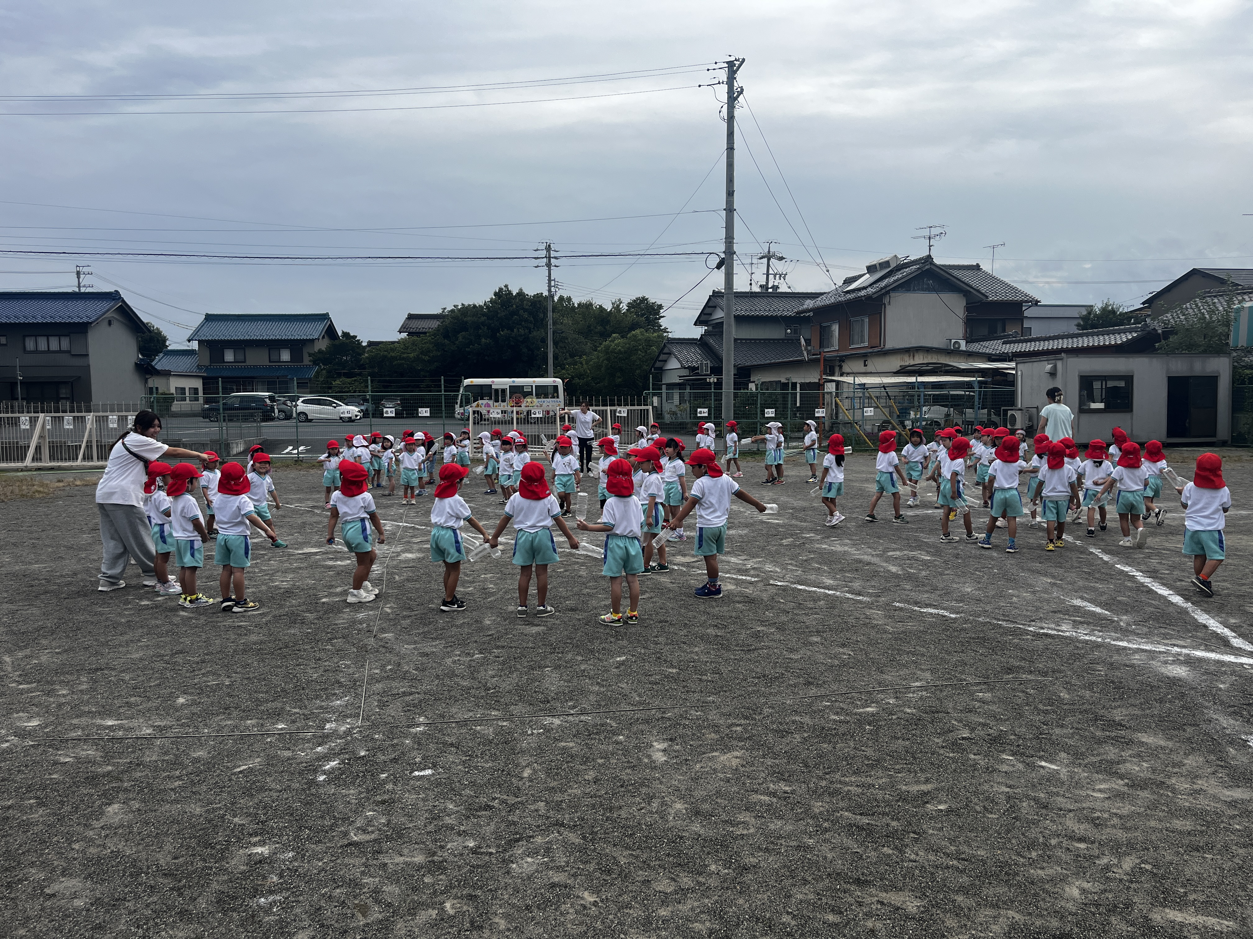 幼稚園では天気の良い日は朝の体操を全員でおこないます。