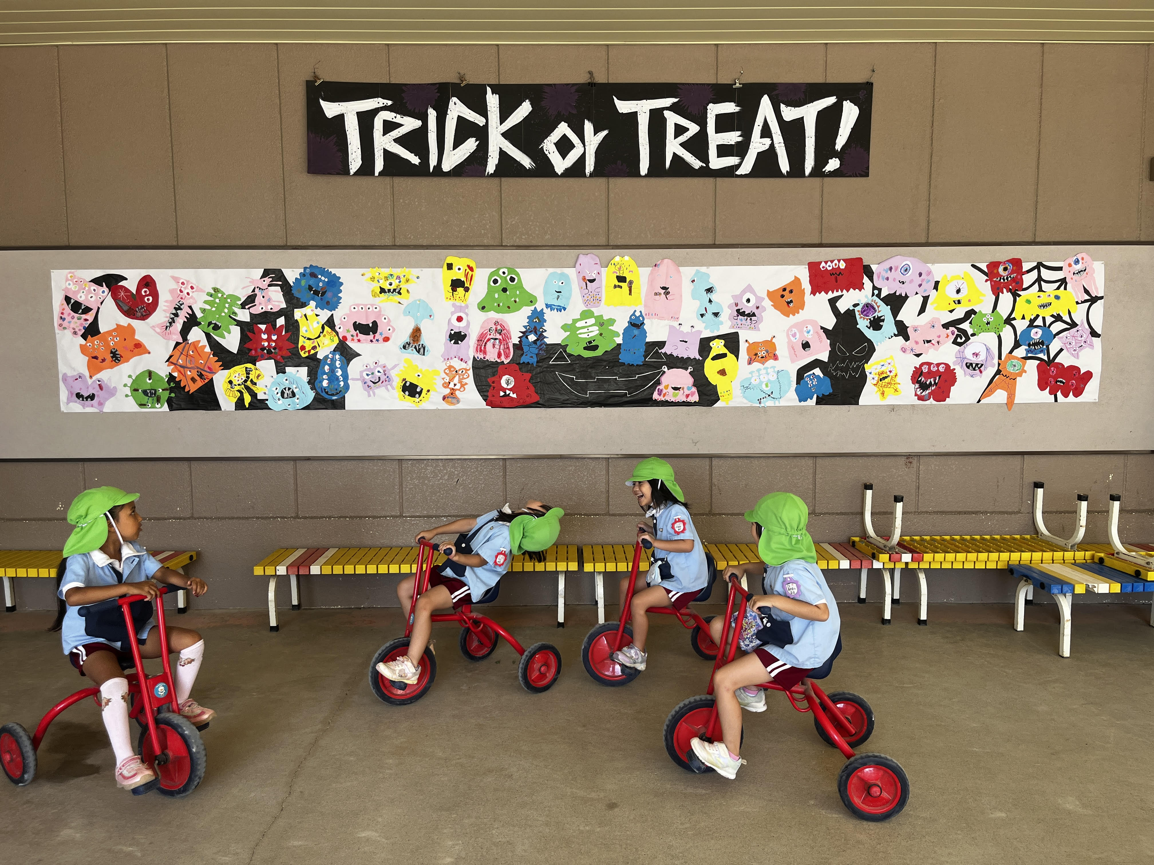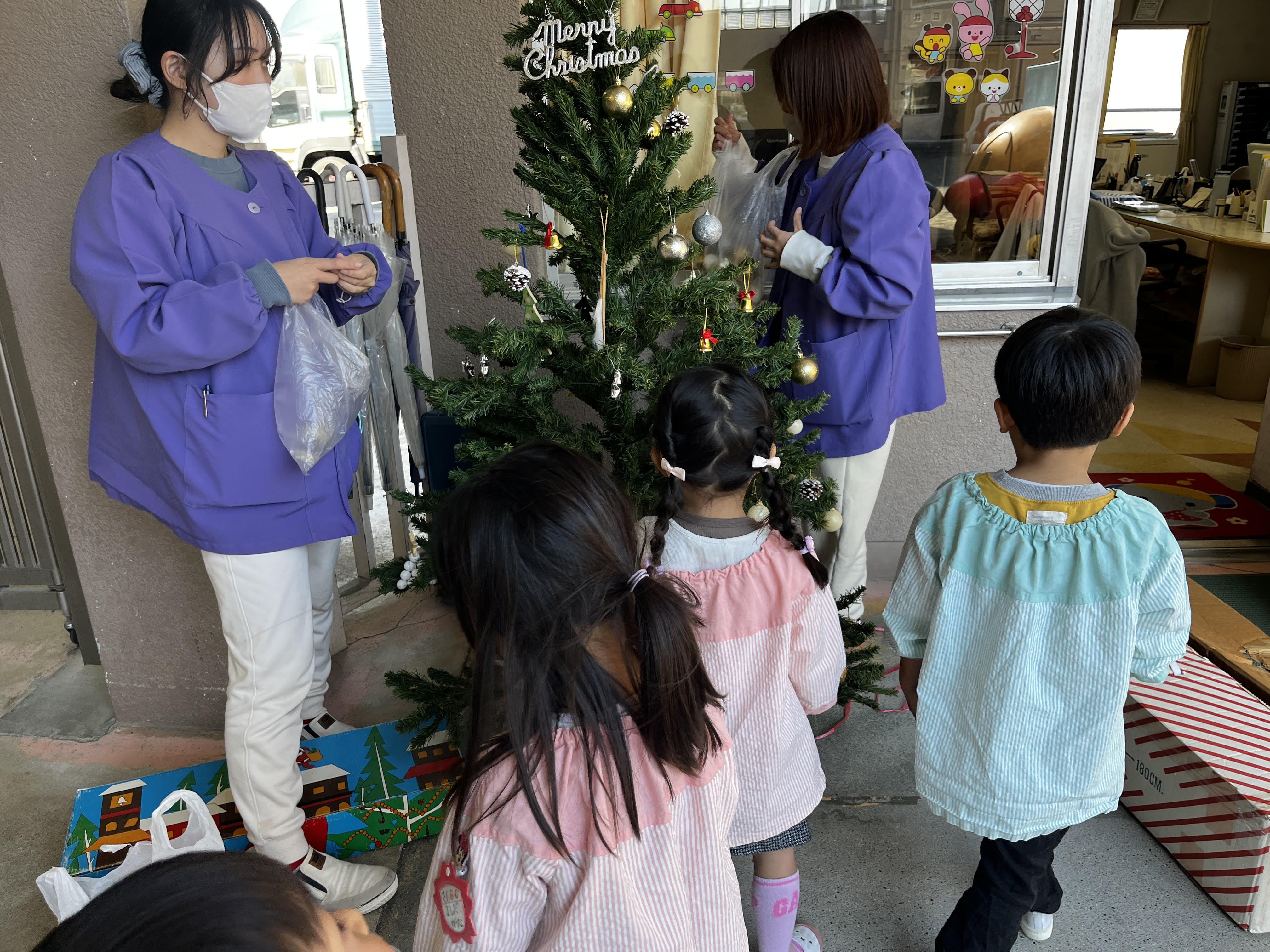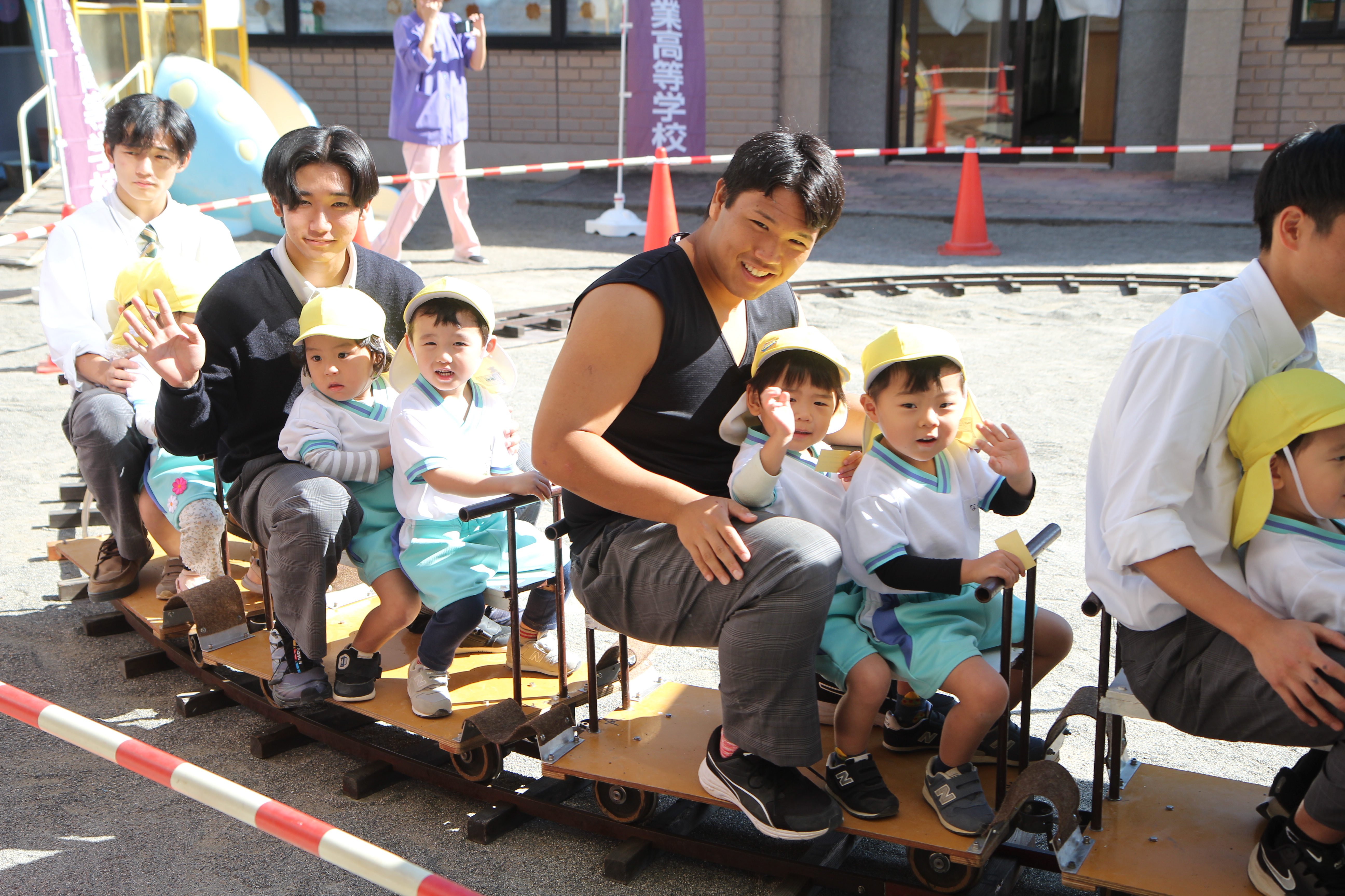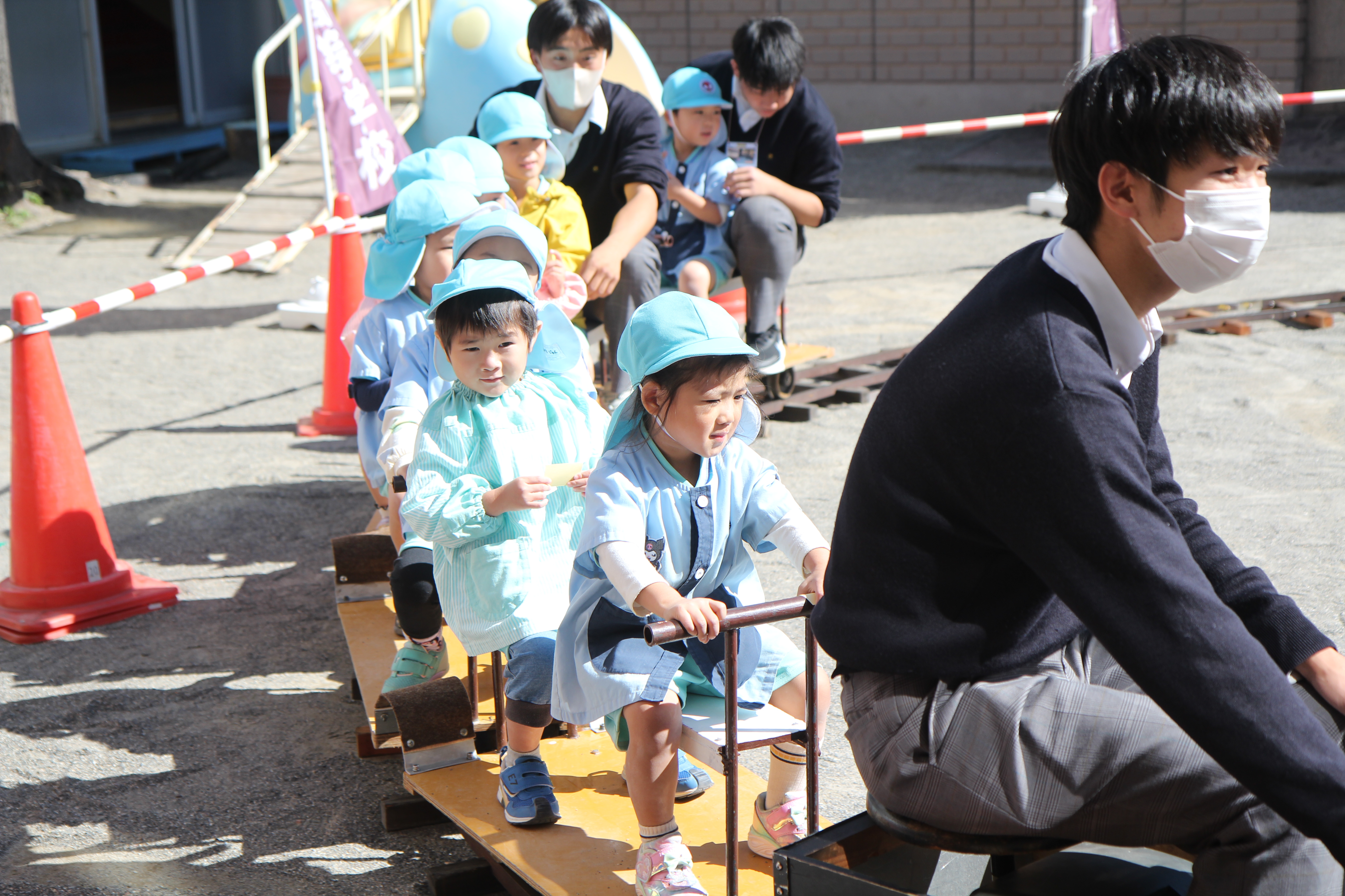 もも組が自分で製作した鯉のぼりを持って外で遊びました。