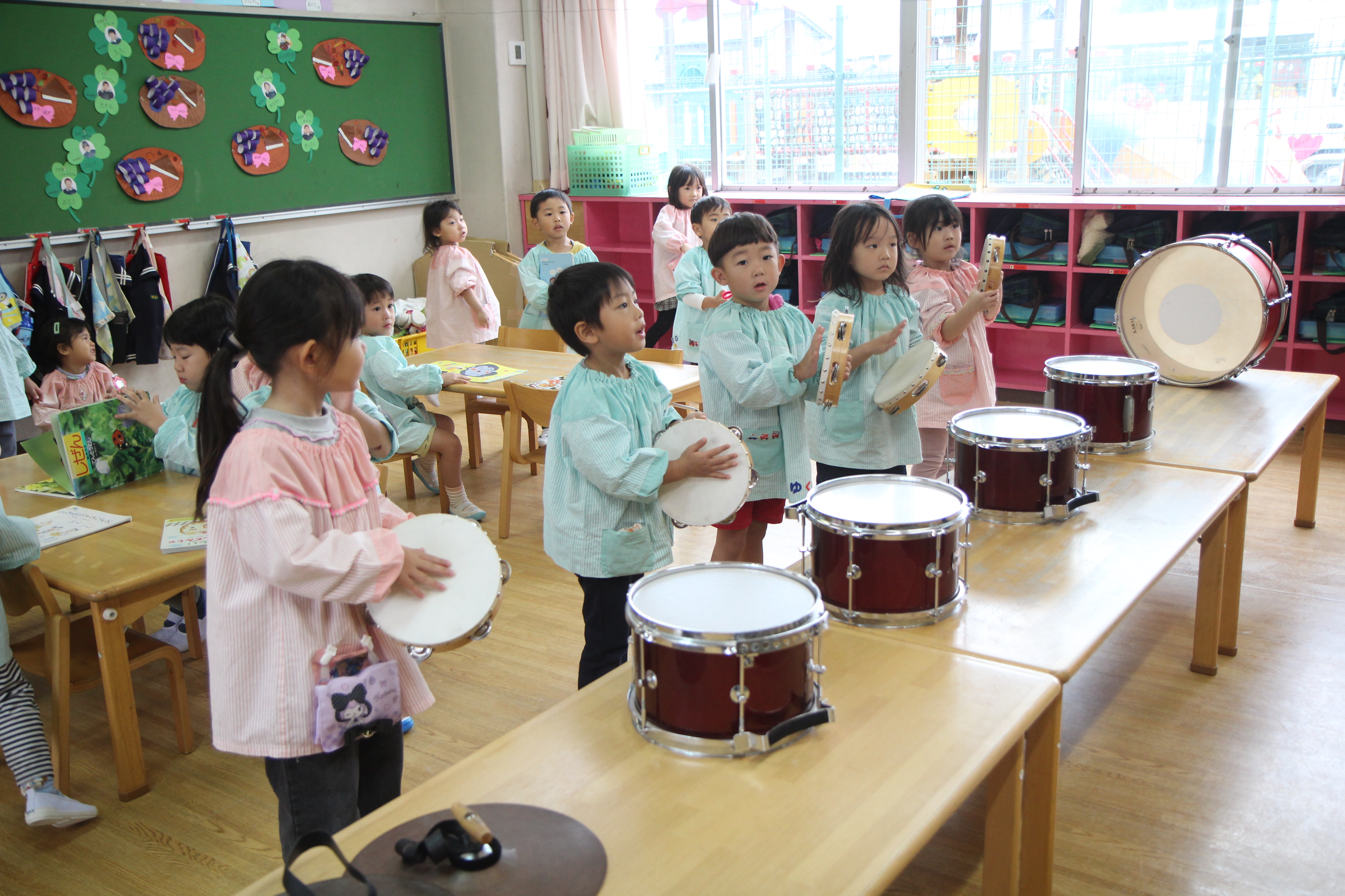 さくら組が鼓隊の練習を本番に向けて取り組んでいます。