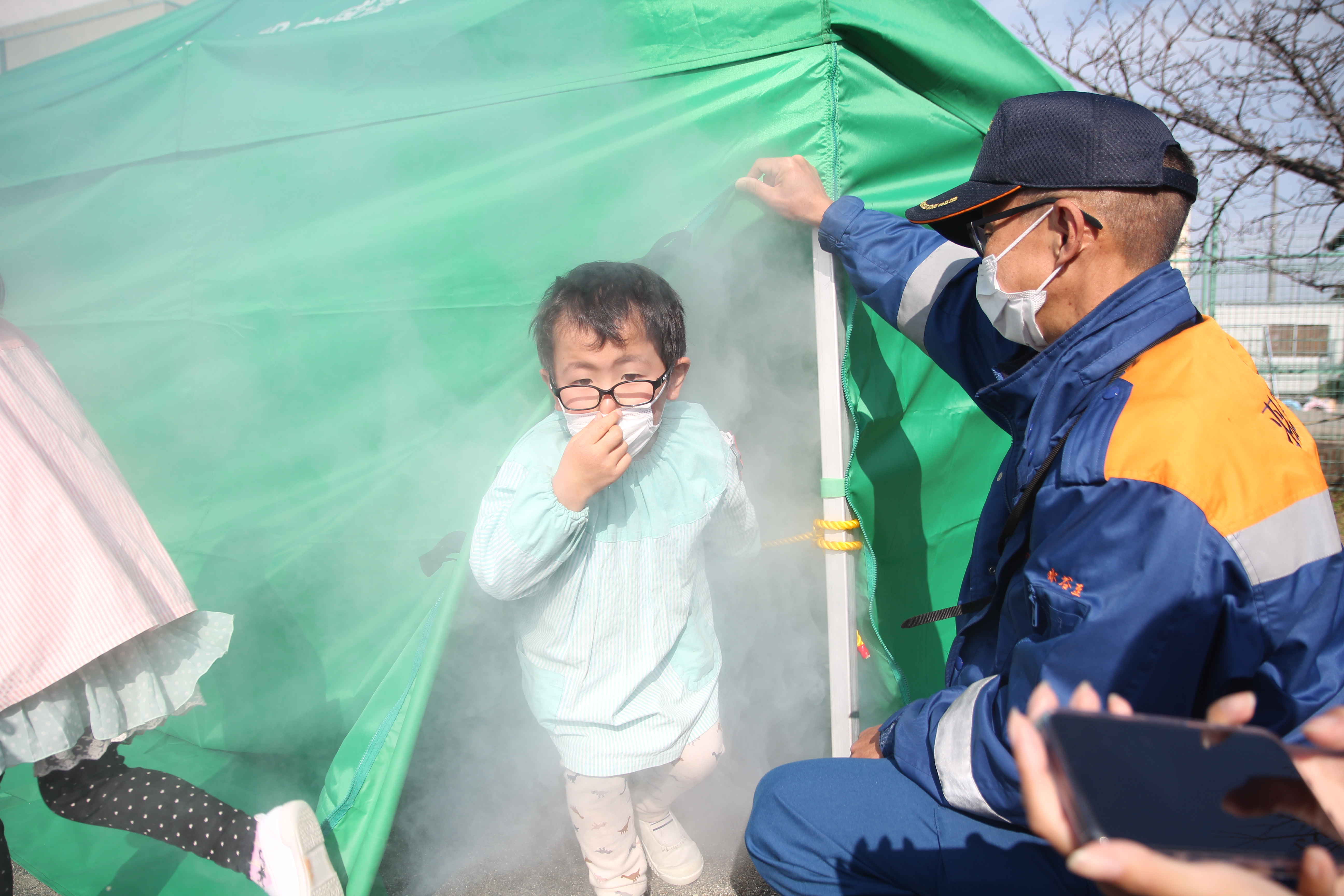 煙体験もおこない実際の災害を想定した訓練をしました。
