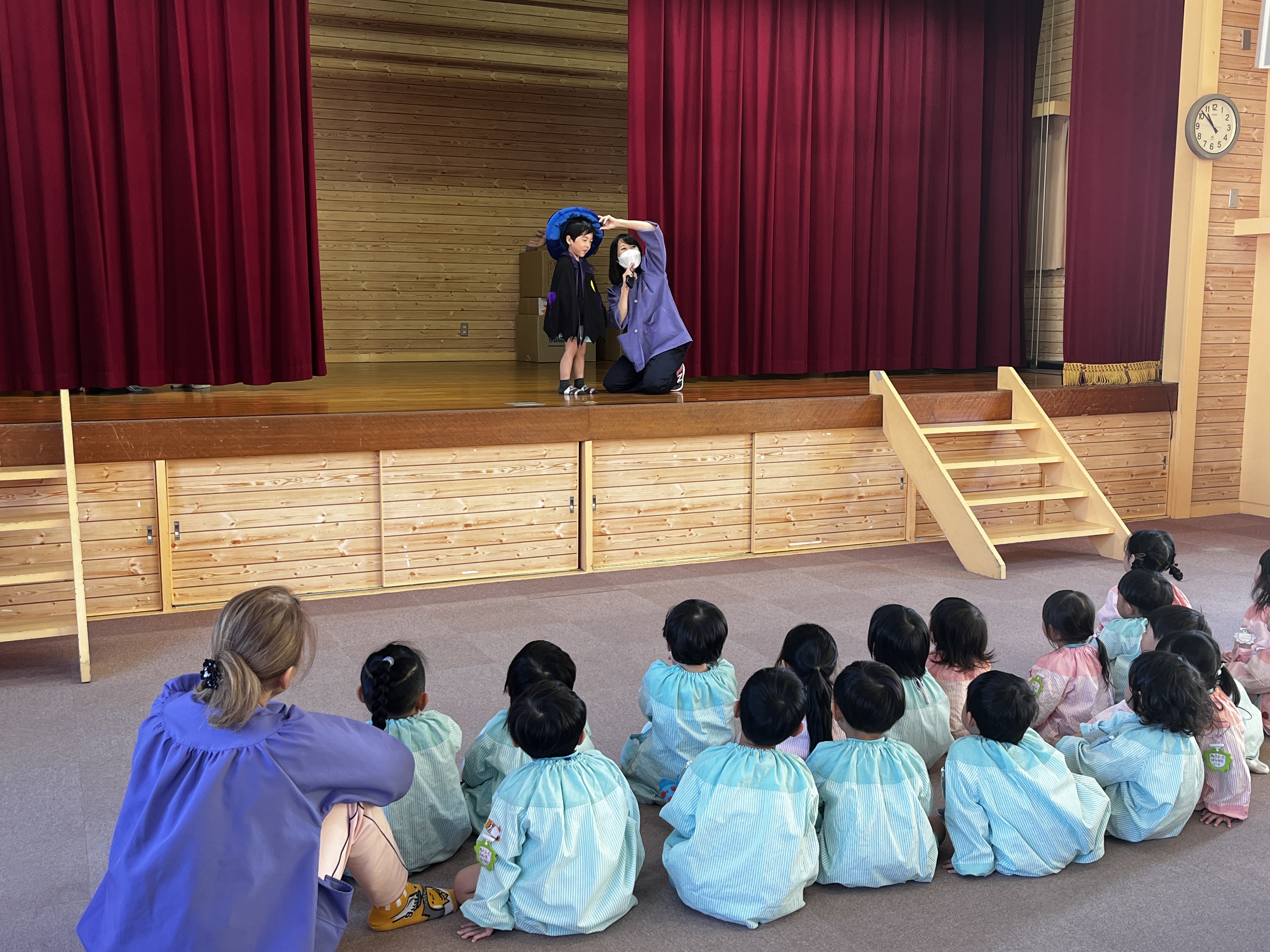 幼稚園の生活 令和7年10月30日 10月の誕生会 ハロウィンにちなんで仮装ゲームをしました。 過去の写真はこちらからご覧になれます